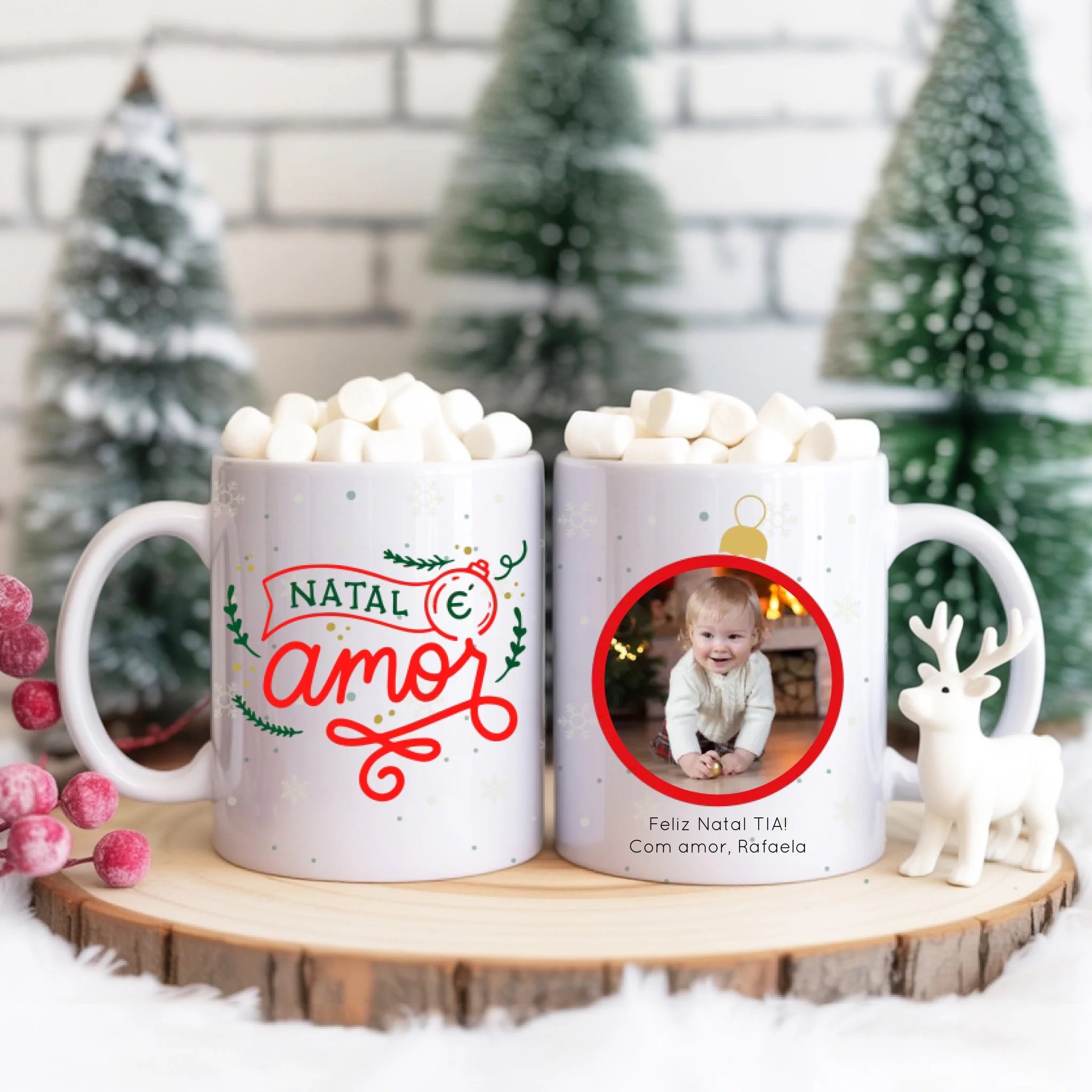 Posso personalizar a caneca “Natal é Amor” com o nome e fotografia de quem vou oferecer?