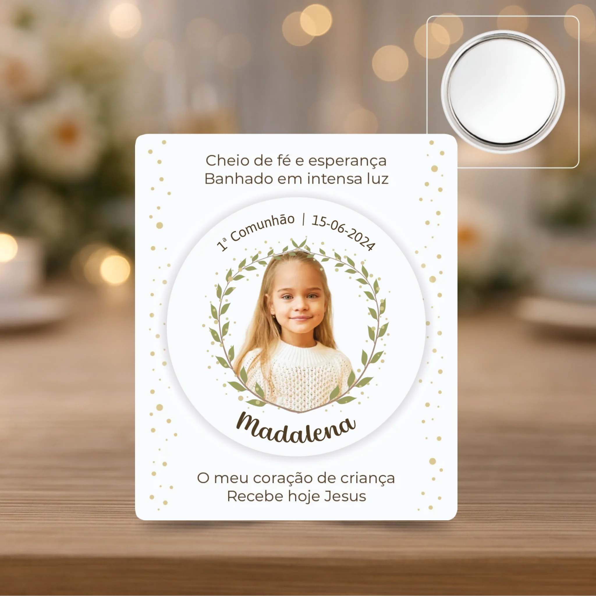 Disponível em três versões – Íman, Descapsulador ou Espelho – esta lembrança adapta-se ao seu estilo e ao tipo de evento. Com 6 cm de diâmetro, é compacta, resistente e perfeita para oferecer aos seus convidados.