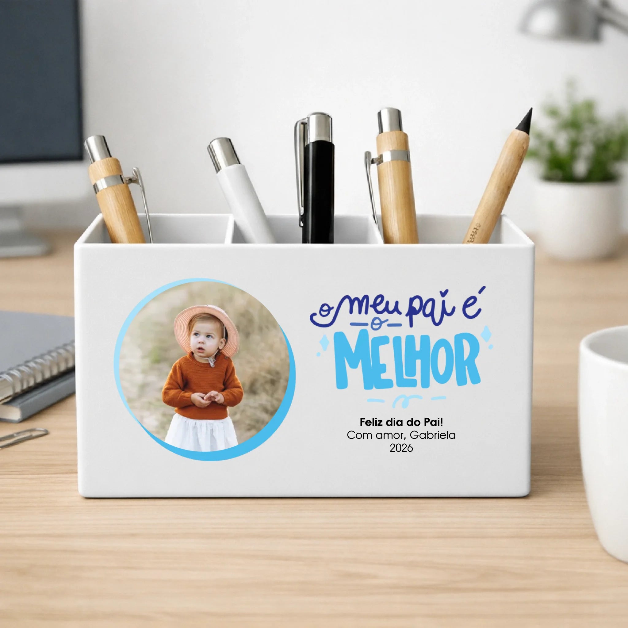 O Porta Lápis Personalizado Dia do Pai é mais do que um simples organizador de secretária. É uma recordação diária do amor e da ligação entre pai e filho(a).